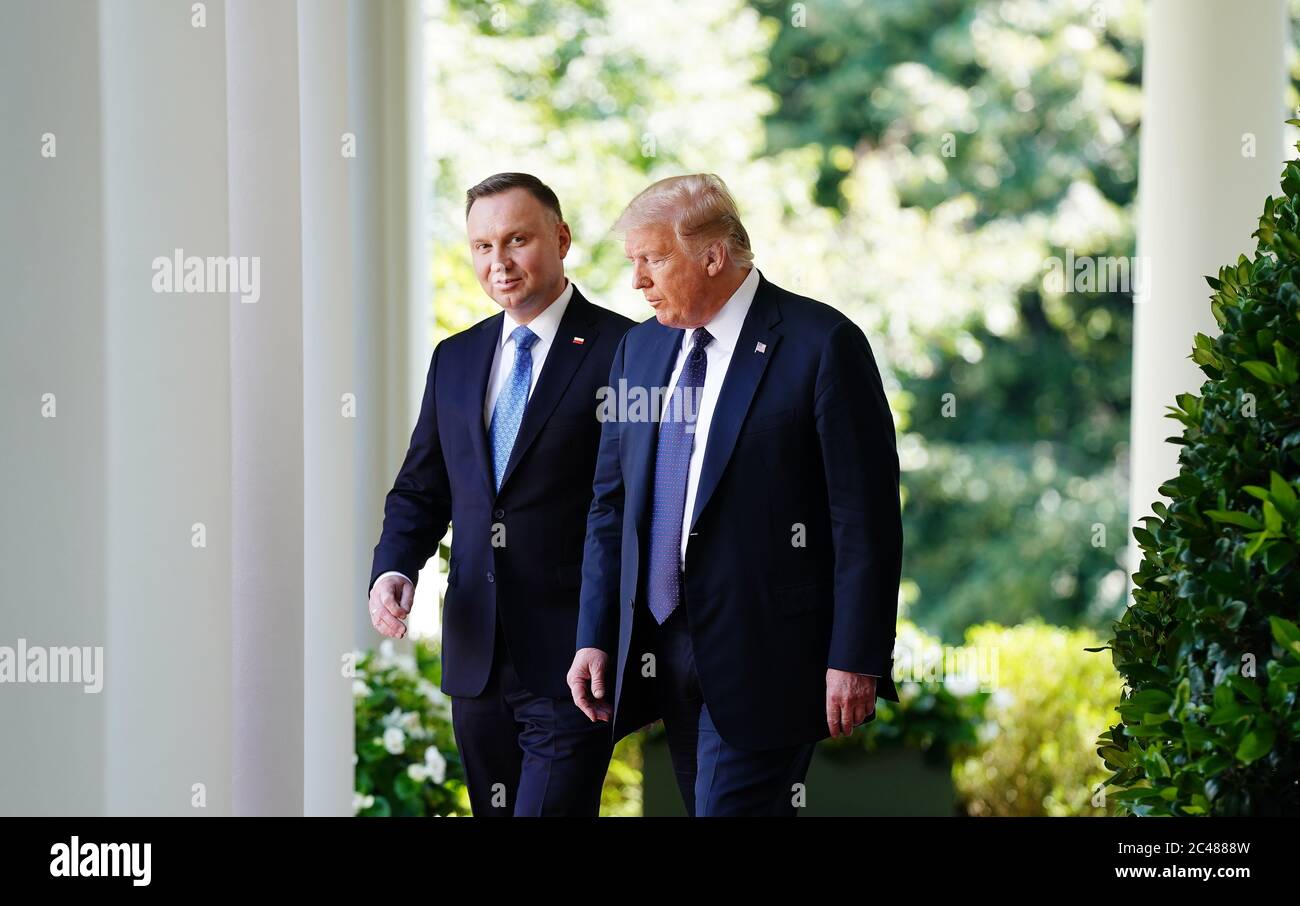 Visitare La Casa Bianca : Il Presidente Americano Donald J Trump L Da Il Benvenuto Al Presidente Polacco Andrzej Duda R Alla Casa Bianca Di Washington Dc Usa Il 24 Giugno 2020 Duda Un Nazionalista Conservatore Che